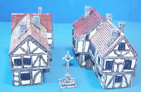 A range of buildings and accessories to model Russian villages and towns. Russian buildings often became very distressed due to the poverty of their owners and harsh weather. This range is accurate for WW1, WW2 and the Russian civil war. The normal Russian village would be grouped along either side of a very wide road (say 50 feet). The road would be dusty in the summer and muddy in the winter.