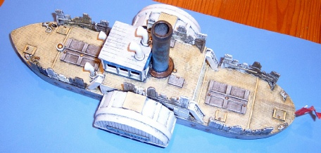 71. Paddle Boat ALBION "A nice big model" Gunboat By Julie includes. 1 Pack Naval gun crew. 1 Pack naval deck crew. Machine gun. Field Gun. 6 Palisades. 2 Large deck hatches. Removable top to wheelhouse. 12" Hull. 5" width. You will need some assembly skill as there are metal parts to be glued on.