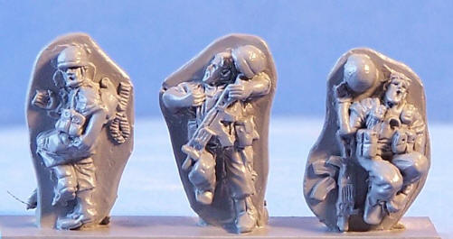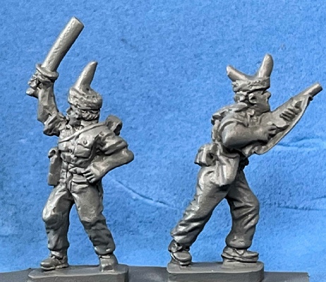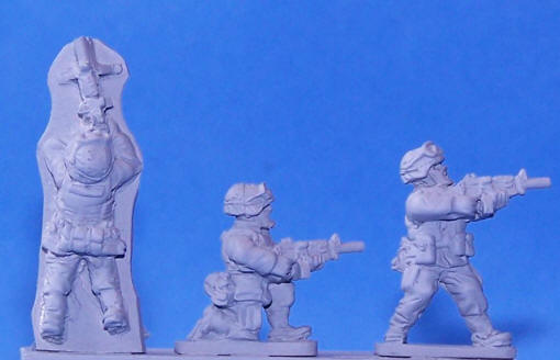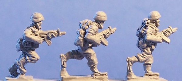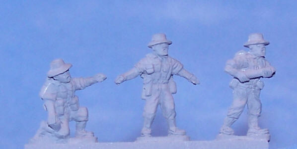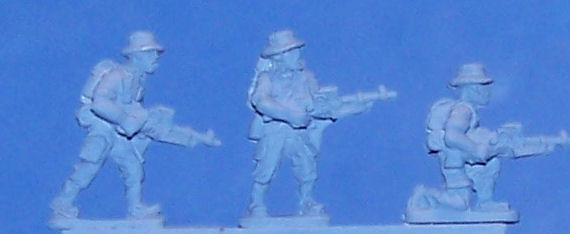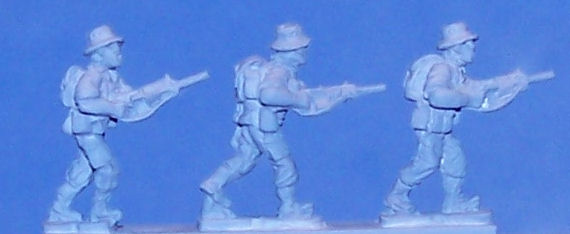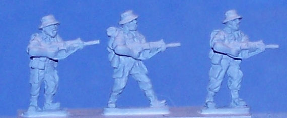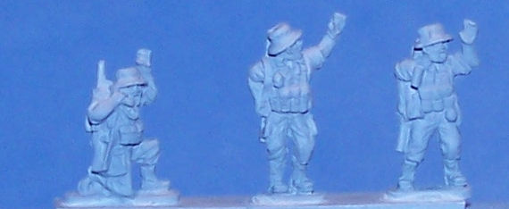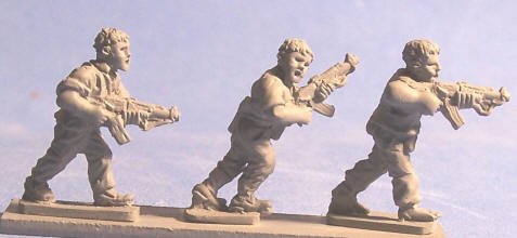 These are full time soldiers. They supplement their erratic pay by setting up road blocks. These troops will fight well if circumstances are favourable. They will obey their officers and will use proper tactics. regulars might well have coloured hats or armbands for identification. Camouflage combat uniforms are common. The helmeted figures will just fine for Cubans, Syrians and the like. They can also be mixed in with beret types as regulars.