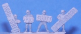 Characters now have new versions. The older versions (above) will be out of production at the end of July 2024. Each of the new character packs contain 3 figures. 1 character pose and two of a bodyguard pose. Each pack costs £2.50