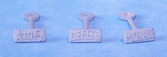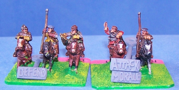 58. General's gift markers. These markers are cast in metal. In ROF a general can be gifted in morale. attacking, defending. These markers are put with a general to show which gifts he has. £6 (15mm ECW) |