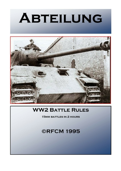 This is a set of WW2 rules . Each force has a number of commands. Each command is either armour, , infantry, support, recce or artillery . The number of each command type varies depending on the army being represented. Players choose order options at the beginning of the game and are restricted to those throughout. |