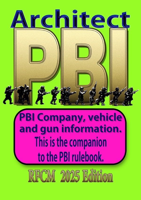 Here it is. PBI 2025. PBI gives each player a company with some support units. The ARCHITECT is a compendium of unit compositions, tank details, gun details and the assets for each company. You will need the architect unless you prefer to design your own tank statistics and unit organisations. The rules do give formulae to "point up" tanks and the points cost of foot bases. |