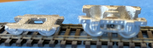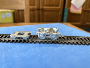 Then flip it upright and put it on the tracks to make sure the wheels are the right distance apart.
