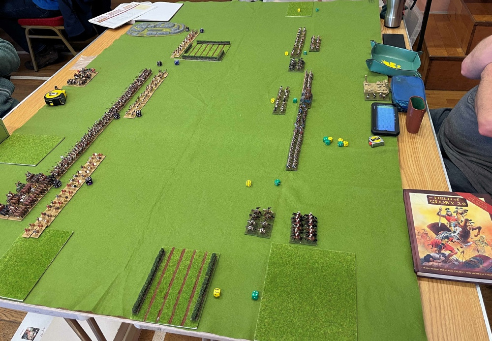 4th March 2023. A very busy meeting with about 40 players present. I was present to take part in a pair of Conquerors and kings test games.